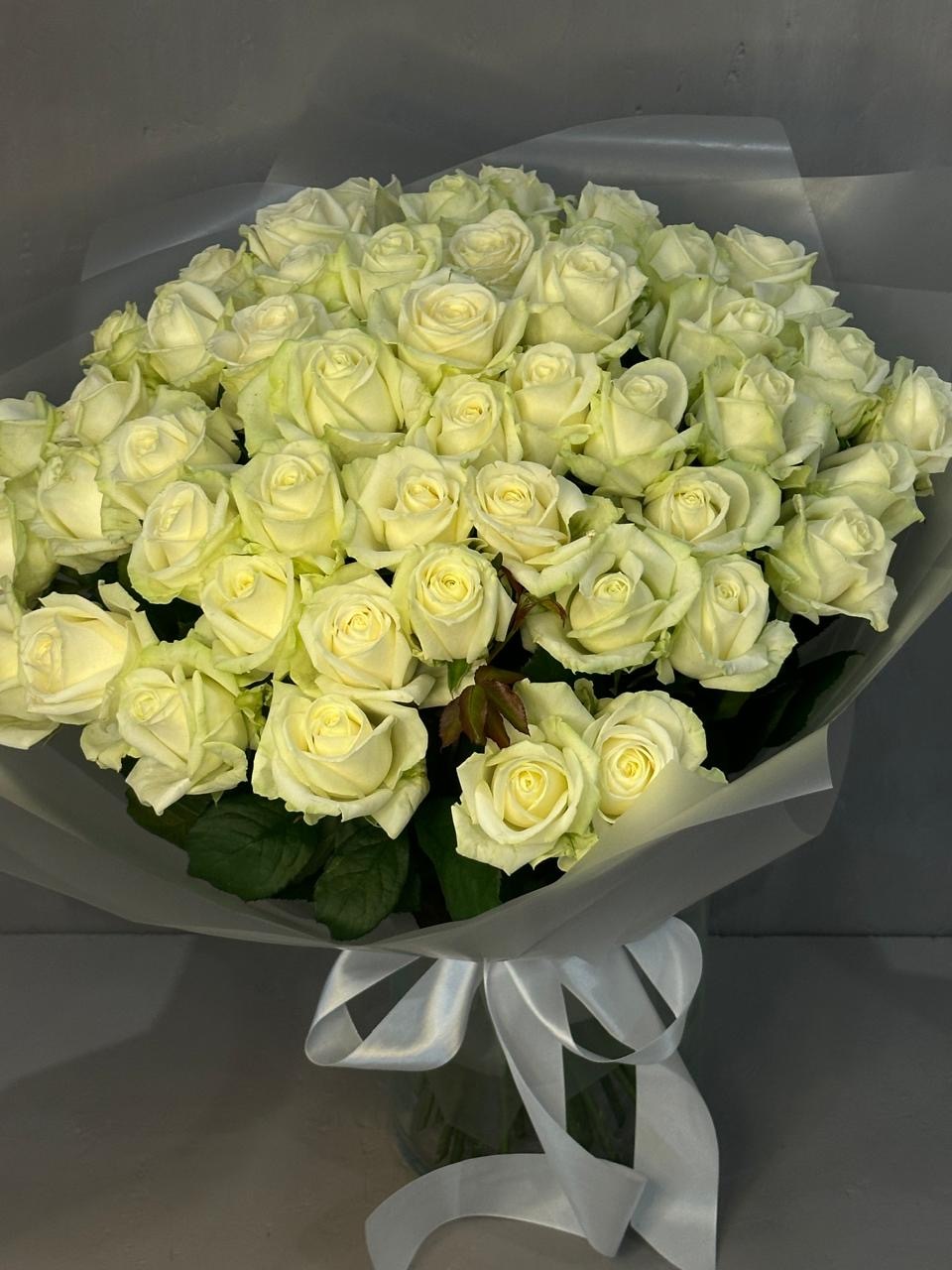 Подарите близкому человеку красоту и элегантность — заказывайте роскошный букет из 51 белой розы сорта «Алаванш»! Белый цвет подчеркивает чистоту чувств, искренность и нежную привязанность. Яркие здоровые бутоны завораживают своей идеальной формой и утонченным ароматом. С таким букетом вы гарантированно произведете впечатление, ведь это больше чем цветы – символ вашей любви, заботы и внимания! Доставка по городу быстро и качественно.